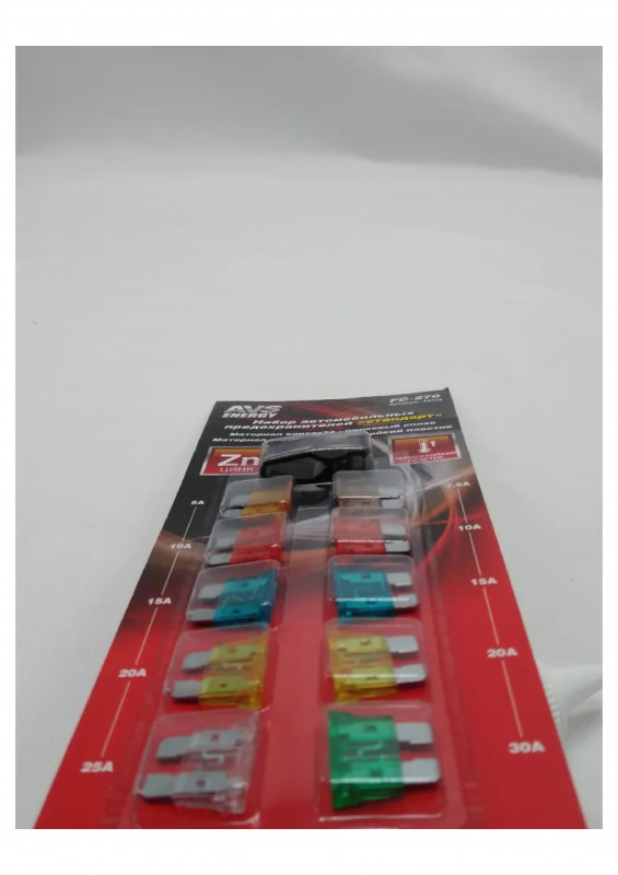 Наборы AVS FC-270 позволят Вам без проблем заменить сгоревший предохранитель в автомобиле. Корпус изделия выполнен из прозрачного пластика, а элемент — из цинкового сплава. Полная линейка необходимых номиналов от 5 до 30А. Применяются на иномарках и большинстве отечественных автомобилей.