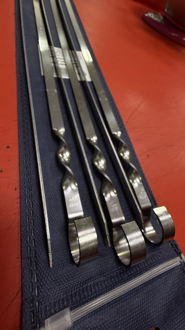 Набор плоских Шампуров 6 шт длинна 500 мм, изготовлены из нерж. стали толщиной 1,5 мм. Поставляются в чехле.