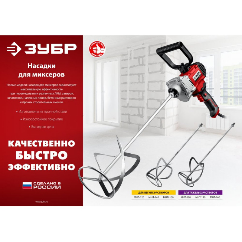 Для сохранения инструмента в рабочем состоянии, а так же предусмотренной гарантией завода изготовителя, наш интернет-магазин (zubr36.ru) рекомендует использовать ЗУБР М14, d120 мм, насадка-миксер для тяжелых растворов "снизу-вверх" (МНТ-120) строго по назначению.