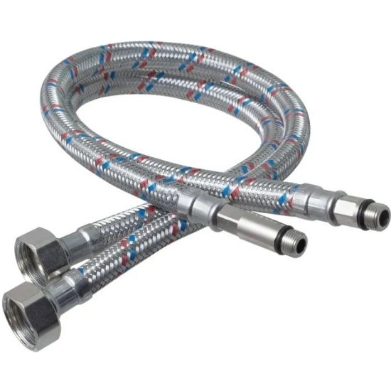Комплект гибких резиновых подводок пара (М10-18 1шт., М10-35 1шт.) в оплетке из нержавеющей стали.